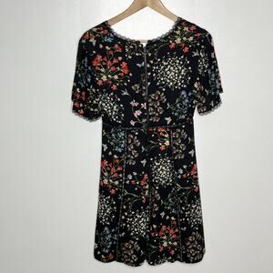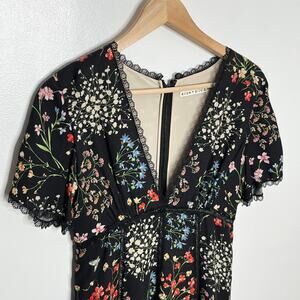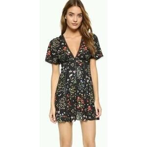 Alice + Olivia Womens Amara Mini Dress 2 Black Floral Fit And Flare V Neck Lace