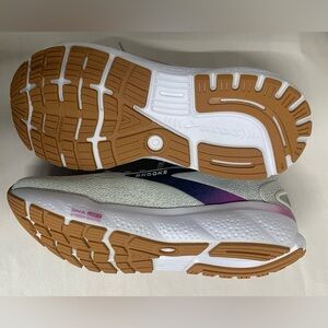 Stylish Brooks shoes with gray and purple accents. Ideal for running and workouts.