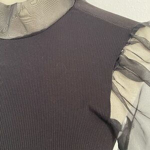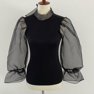tinywillow Black Top with Sheer Sleeves XS