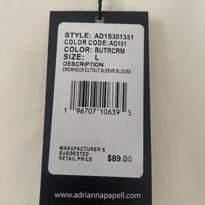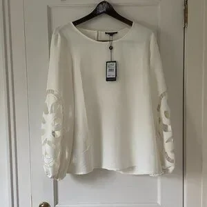 Adrianna Papell Blouse Women's Cream Crewneck Cutout Sleeve L NWT