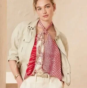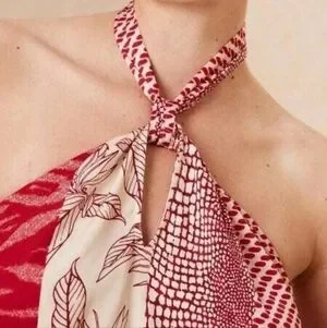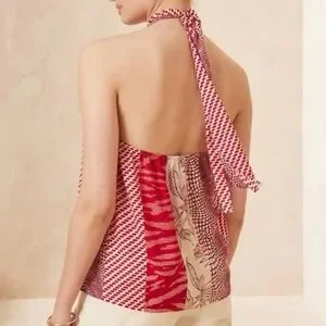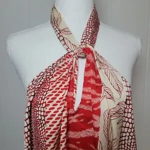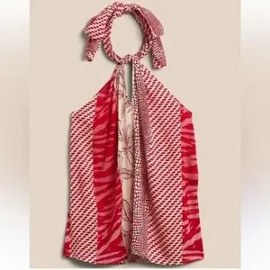 NWT Banana Republic Factory Red Sunset Satin Twist Neck Halter Tank Top XL