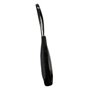 A sophisticated leather tote designed for professionals who appreciate refined accessories and structured elegance. The bag combines sleek patent leather with a distinctive perforated logo, offering both visual interest and practical carrying capacity.
