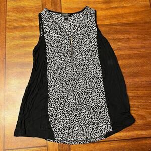 August Silk Zipper Front Geometric Black & White Tank Size Medium Lightweight