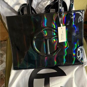 Sleek Telfar tote with a holographic shine. Perfect for bold style statements.