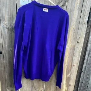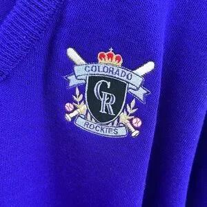 Preowned vintage men’s, 1990s, unique and stylish, Nutmeg Mills brand, Official Licensee, Colorado Rockies, purple knit, v-neck, golf sweater made in USA. Classic retro old-school throwback, MLB baseball fan, game day tailgate party, dressy pullover featuring embroidered team logo chest design. Light wear, slight pilling, minor issue lower mid-front, otherwise, good condition, see pics. Sz XL. Un-stretched: Pit-pit 24”. Shoulder-hem 29”. Back across shoulders 22”. Sleeve 26”. Please compare measurements with an item that fits well. No returns. Measurements estimated to best of our abilities.