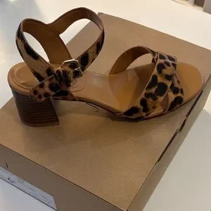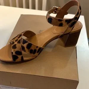 Stylish leopard print heels with a sturdy block heel. Adjustable ankle strap for a secure fit.