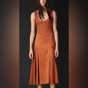 Burberry Prorsum 2016 Runway Burnt Orange Silk Sateen Midi Dress Size 42 U.S. 8