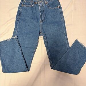 Classic straight leg design. Denim blue color. Ideal for everyday wear.