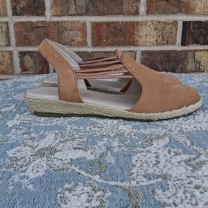 🪷 David Tate "NELLY" Tan Leather Espadrille Slingback Wedge Shoes Sz.6