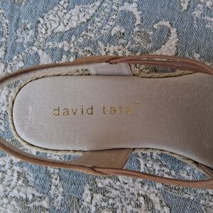 Chic tan David Tate "Nelly" Slingback Wedge Espadrilles. Sz.6 M They feature a nubuck leather a ropey espadrille trim and a elasticized strap for a comfortable fit.