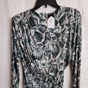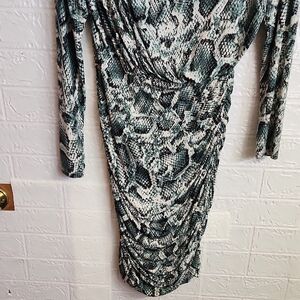 Alexia Admor Green and Black Snake Print Long Sleeve Dress