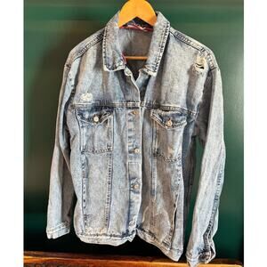 Free People | Women's Rumors Seamed Denim Button Up Oversized Trucker Jacket Med