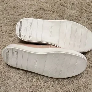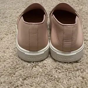 Elegant blush pink Vince sneakers. Easy slip-on design. Perfect for casual outings.