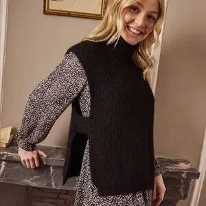 Molly Bracken Sleeveless Openwork Sweater w/ Turtleneck, Never worn, new without tags.