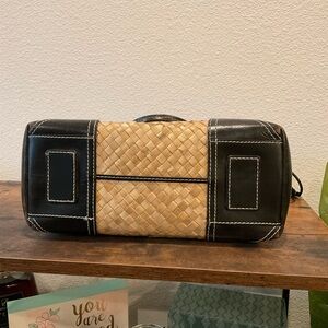 Elegant Tan and Black Womens’ Woven Hand Bag