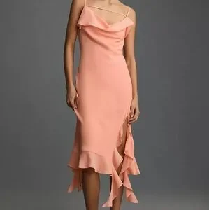 Anthropologie Mare Mare Sleeveless Draped Asymmetrical Midi Dress Peach