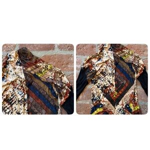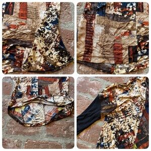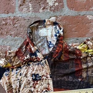 Gary Graham abstract print long sleeve top. Featuring a blend of vibrant colors, this top is perfect for any occasion. The black sleeves add a touch of elegance to the artistic design. See photos for approximate measurements. Materials tag is faded, some silk and cotton in this price of art. Size is P, aligned with an XS/S.