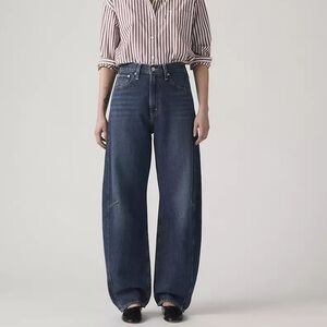 Levi’s cinch barrel jeans with a high-rise and loose through the hip and thigh. Tapered leg. Baggy jeans- without the waist gap. Color: New Shades. Dark wash. W26 x L31. New with tags!