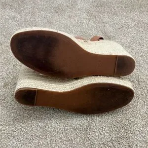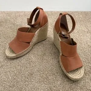 Elevate your warm-weather style with the chic Treasure & Bond Sannibel platform wedges. These Nordstrom-exclusive sandals feature rows of tightly braided jute along an espadrille-inspired platform, bridging the gap between casual comfort and a high-fashion silhouette. The wide leather straps and adjustable ankle closure ensure a comfortable yet chic look. They’re in good condition with casual wear on the leather, soles and insoles.