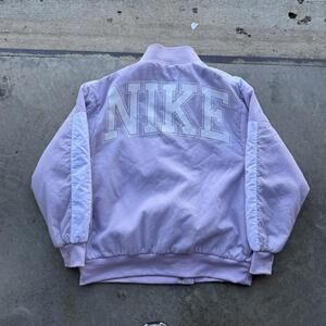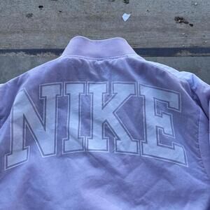 Team Nike Women’s purple varsity satin bomber jacket size medium