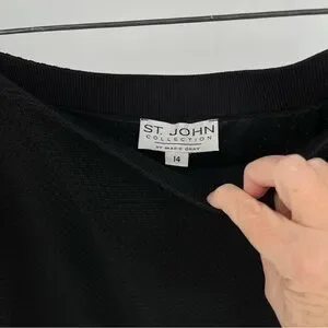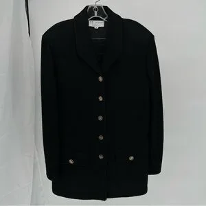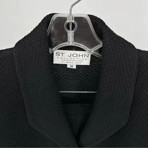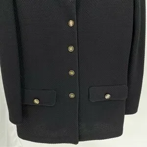 St. John Collection Santana Knit Blazer Suit Set Size 14 Black Gold Buttons