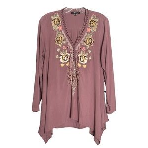 Andree by Unit Mauve Boho Floral Embroidered Lightweight Tunic Top Size M