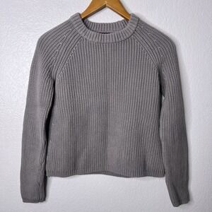 Quince Women 100% Organic Cotton Fisherman Crew Sweater Gray Sleeved Top XS