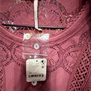 FP Movement by Free People Lace Button-Up Top - Burgundy