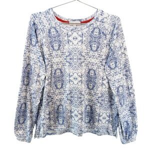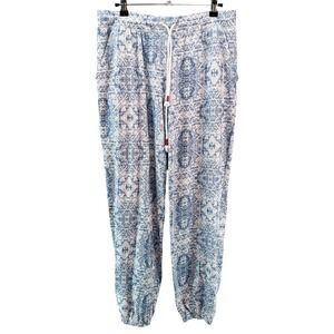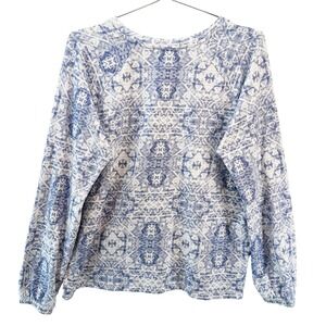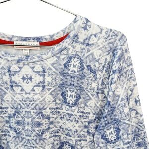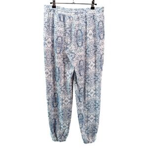 PJ SALVAGE Long Sleeve & Jogger Pajama Set • Large • blue white geometric print