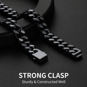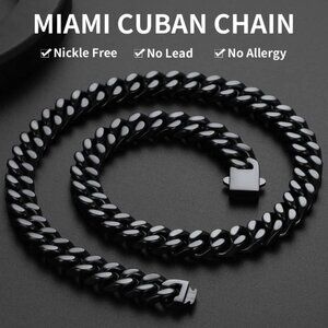 Men's 12mm Width Steel Black 18K Gold Plated Cuban Durable Hip Hop Chain Jewelry
