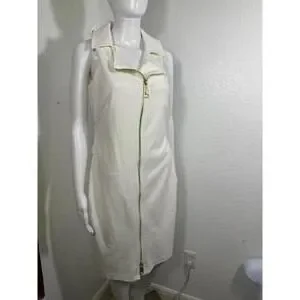 Calvin Klein White Moto Zip Dress Size 10 Sleeveless Belted Minimalist Chic