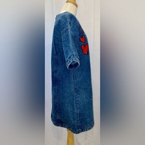 Anthropologie Dhruv Kapoor Embroidered Hearts Denim Short Sleeve Mini Dress