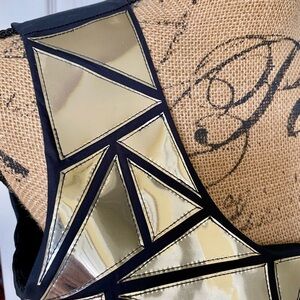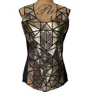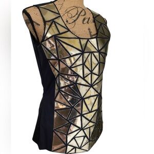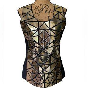 Tory Burch Holographic Mosaic Abstract Black Silver Sleeveless Top Womens Size 6