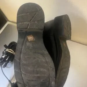 Stylish Ariat ankle boots. Black leather with tan accents. Perfect for any occasion.