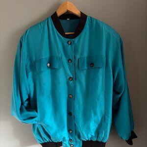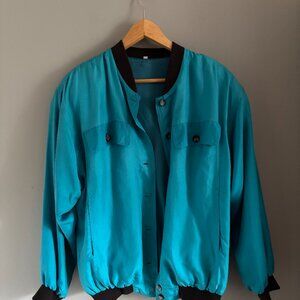 Vintage Turquoise Silk Bomber Jacket