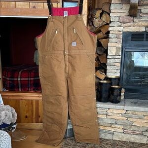 Sturdy Carhartt bib overalls with warm insulation. Perfect for outdoor work. Includes multiple pockets and adjustable straps. All zippers work, Great condition from smoke free home.