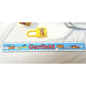 Vintage 1980s Garfield United Feature Syndicate Lot Pencil Case Pencils Ruler
