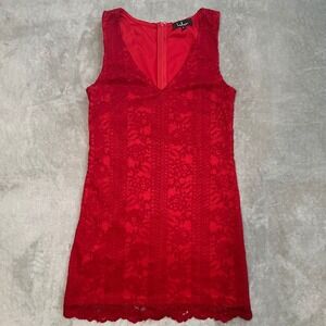 Lulus Red Lace Mini Dress Women Size M Sleeveless V-Neck Shift Coquette Romantic