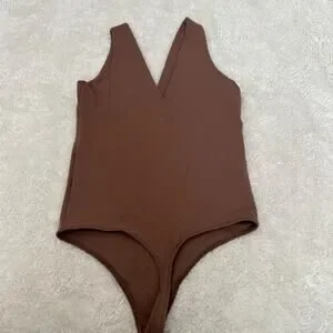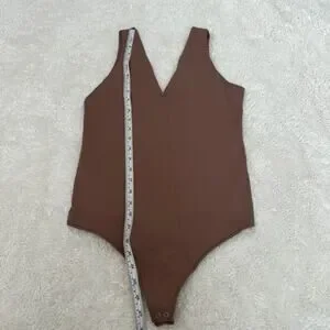 Abercrombie Fitch Soft A&F Sleeveless V Neck Bodysuit Taupe M Basics Minimalist