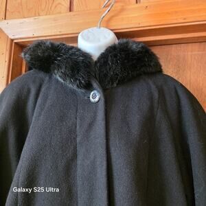 EUC vintage 80s 90s Donnybrook, fur trimmed hood, aline wool coat sz 12p