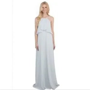 Nouvelle Amsale Cait Dress Formal Chiffon Blue Cloud Maxi Gown Size Small.