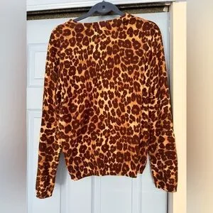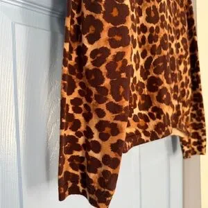 Stylish leopard print sweater. Long sleeves. Perfect for casual wear.