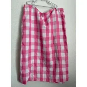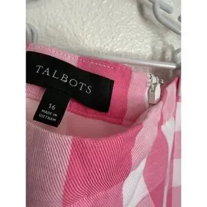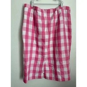 Talbots Pink White Gingham Check Pencil Skirt Size 16 Lined Back Vent Midi