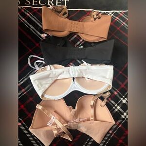 Elegant bras in black, white, nude and tan. Set of 4. Comes from smoke free pet free home. Brand new never worn. No tags. Perfect blend of comfort and style.the white one has some dust on it.