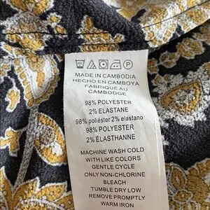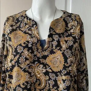 Chic paisley blouse by Michael Kors. Features black and gold design. Ideal for stylish outings.