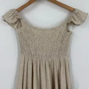 Dress Forum Linen Blend Off Shoulder Smocked Back Dress in Natural | Small
