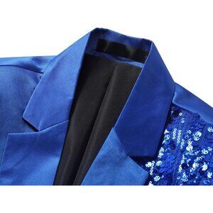 Men's Colorblocking Sequin - Blue Stylish Dinner Tux Dress Blazer Slim Fit Coat