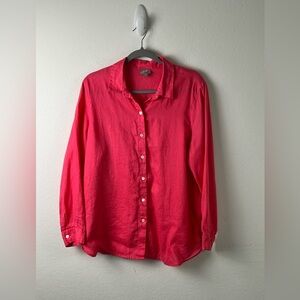J. Jill pink linen long sleeve button down. Wear over a dress or with jeans or shorts.