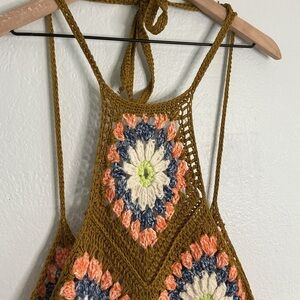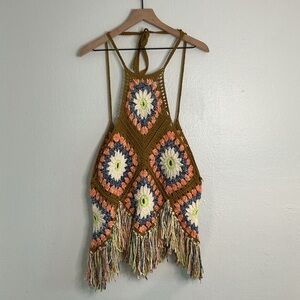 Free People Summer of Love crochet halter top with fringe size M/L