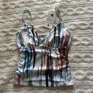 Abstract Sexy V Neck Ruched Cami Top Sleeveless Spaghetti Double Layer Fitted